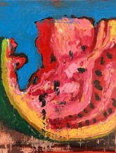 Somerset Velvet White 300gsm에 4색 스크린 인쇄, 아크릴 페인트와 수채화로 아티스트가 손으로 낚시질