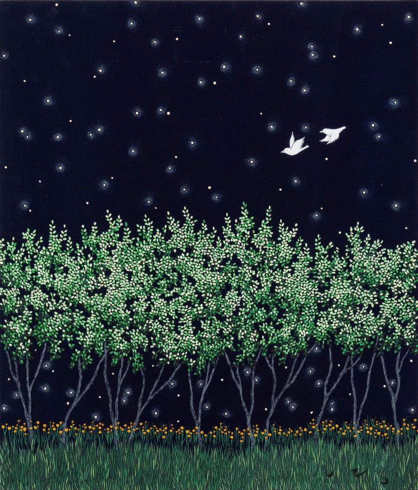 그녀의 작품은 참 따뜻하다. 눈에 띄게 화려하진 않지만, 잔잔한 색채의 배경과 나무, 새, 들판 같은 소박한 소재들은 삶에 지친 우리들에게 편안함을 선사한다. 밝고 따뜻한 그녀의 작품을 보며 관람자들은 흔히 “위로가 된다”, “치유가 된다”라는 말을 하곤 한다. 이는 바로 이영지 작품이 가진 힘이다.