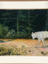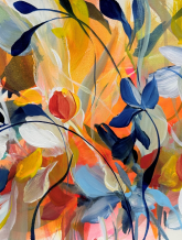 캔버스에 그린 수채화의 오일 및 디지털 콜라주
